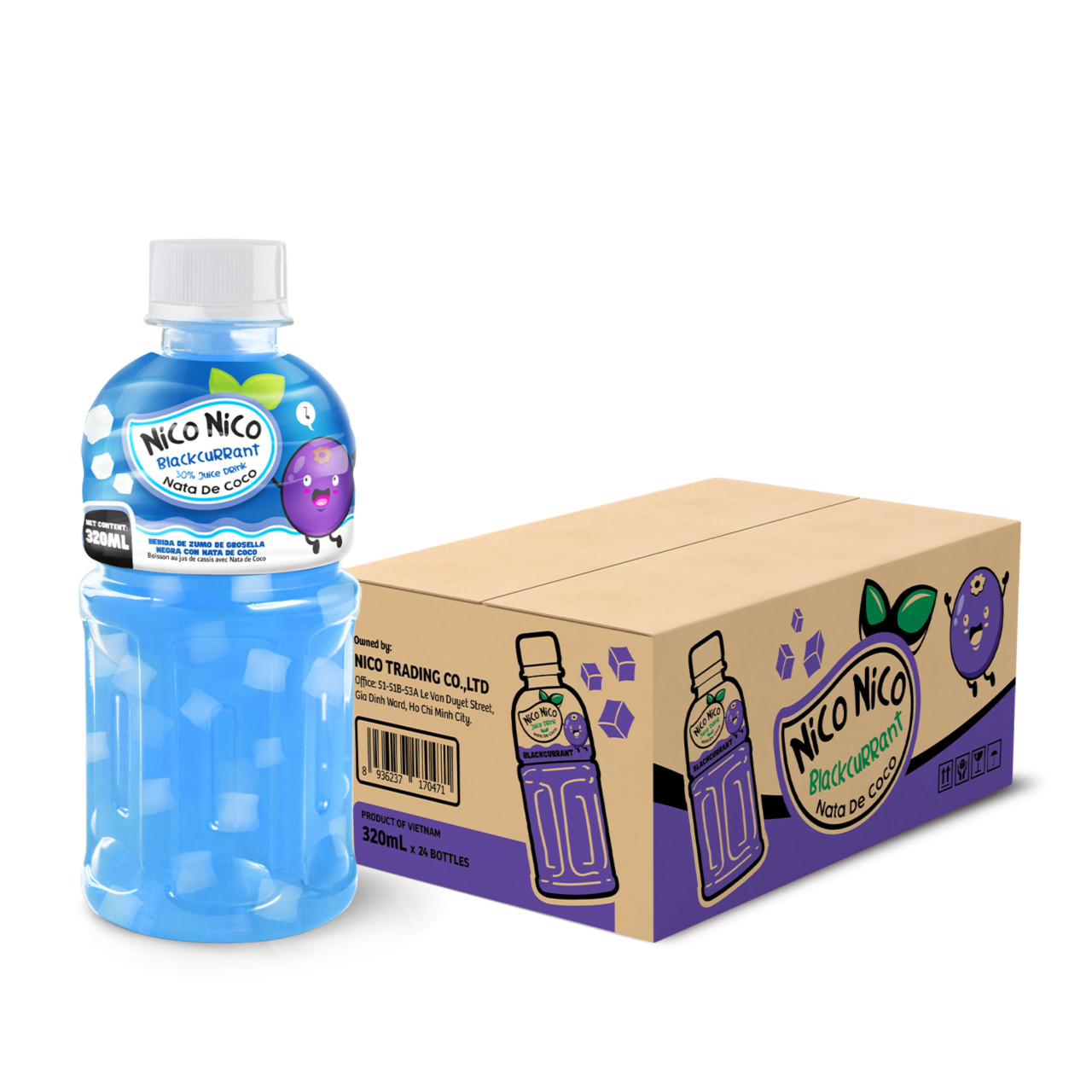 Nico Nico black currant juice with nata de coco combines the bold, tart flavor of black currants with the soft, jelly-like pieces of Nata de Coco for a delightful drinking experience. Packed in a portable 320ml bottle, it is rich in vitamin C and antioxidants, helping to support your immune system while offering a unique blend of flavor and texture. This juice is ideal for staying hydrated and revitalized wherever your day takes you.
