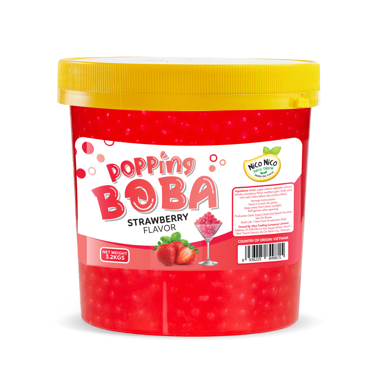 Popping boba ball with strawberry flavor is a vibrant beverage topping that adds juicy texture and visual appeal to a wide range of cold drinks and desserts. Each pearl contains sweet strawberry juice encased in a thin shell that bursts easily when bitten. These boba pearls complement milk teas, fruit infusions, and frozen treats, offering a bright red hue and a playful, chewy element. The resealable container preserves freshness between uses, making it ideal for repeated preparation in commercial and event settings.