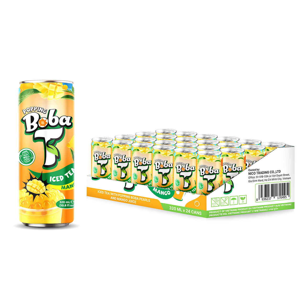 This popping boba tea fuses brewed tea with the tropical richness of mango juice, creating a vibrant and satisfying drink. Each 320ml can is filled with popping boba that delivers a juicy mango flavor with every sip. The refreshing tea base perfectly complements the natural sweetness and creamy undertones of mango. Its convenient size makes it easy to carry, allowing you to enjoy a playful and delicious beverage at picnics, during travel, or as a quick treat anytime.
