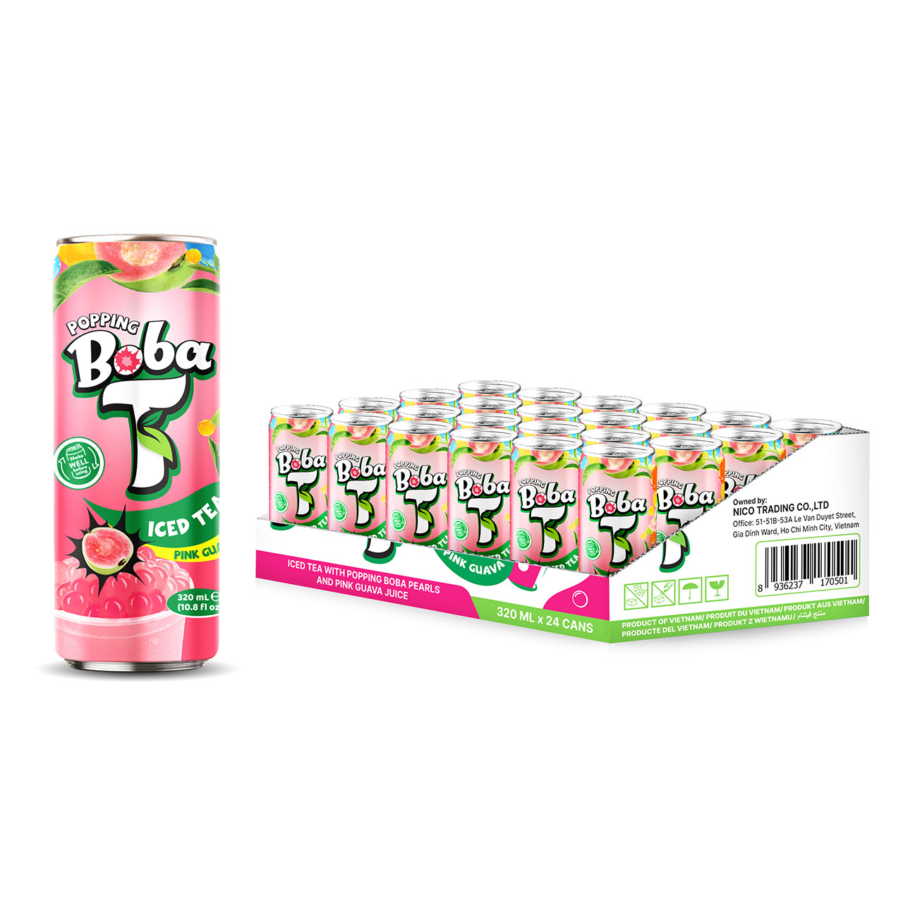 This popping boba tea pairs the smoothness of brewed tea with the tropical allure of pink guava juice. Each 320ml can include popping boba that releases a sweet and tangy pink guava flavor, adding an interactive twist to every sip. The rich, tropical profile of guava complements the tea, creating a refreshing and indulgent drink. Its compact size makes it ideal for busy lifestyles, perfect for enjoying during commutes, gatherings, or while relaxing at home.