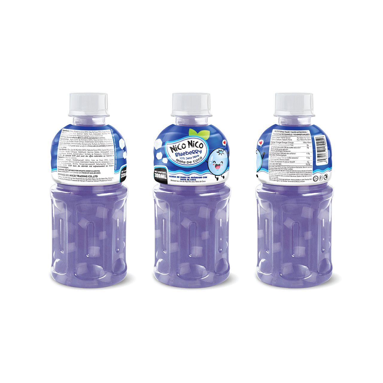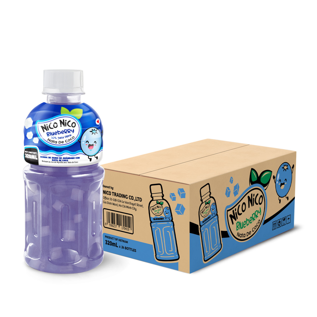 Nico Nico blueberry juice with nata de coco combines the rich, tangy flavor of blueberries with the chewy texture of Nata de Coco for a delightful drink. This 320ml juice is packed with the natural goodness of blueberries, known for their antioxidant properties, offering a refreshing and health-conscious choice. The compact bottle makes it convenient for any occasion, whether at work, school or on the go.