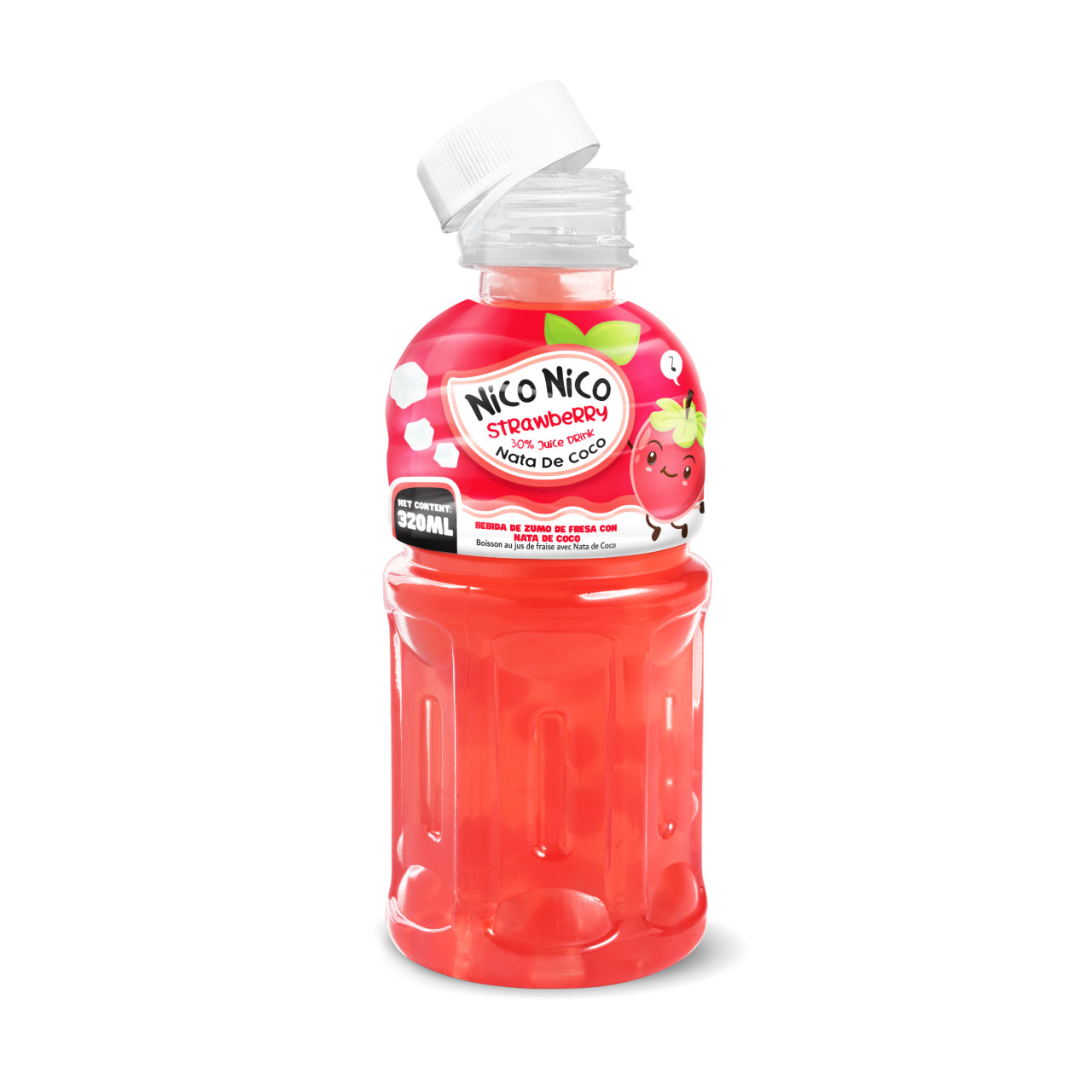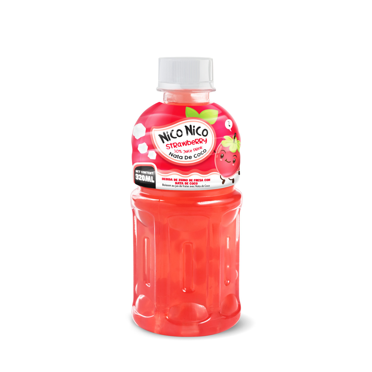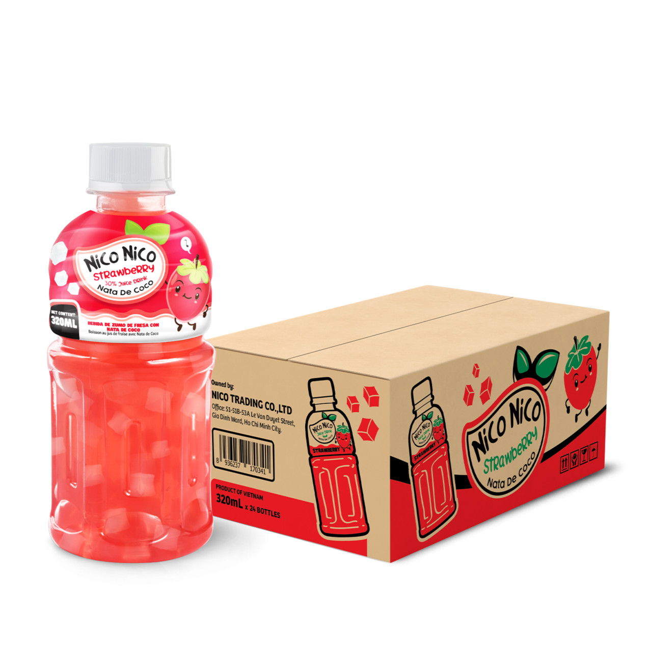 Nico Nico strawberry juice with nata de coco pairs the fruity sweetness of ripe strawberries with the satisfying texture of nata de coco. This 320ml drink offers a vibrant way to enjoy the natural flavor of strawberries while staying hydrated. Its compact size makes it easy to take along to work, school, or a picnic, providing a delightful treat that is both refreshing and satisfying.