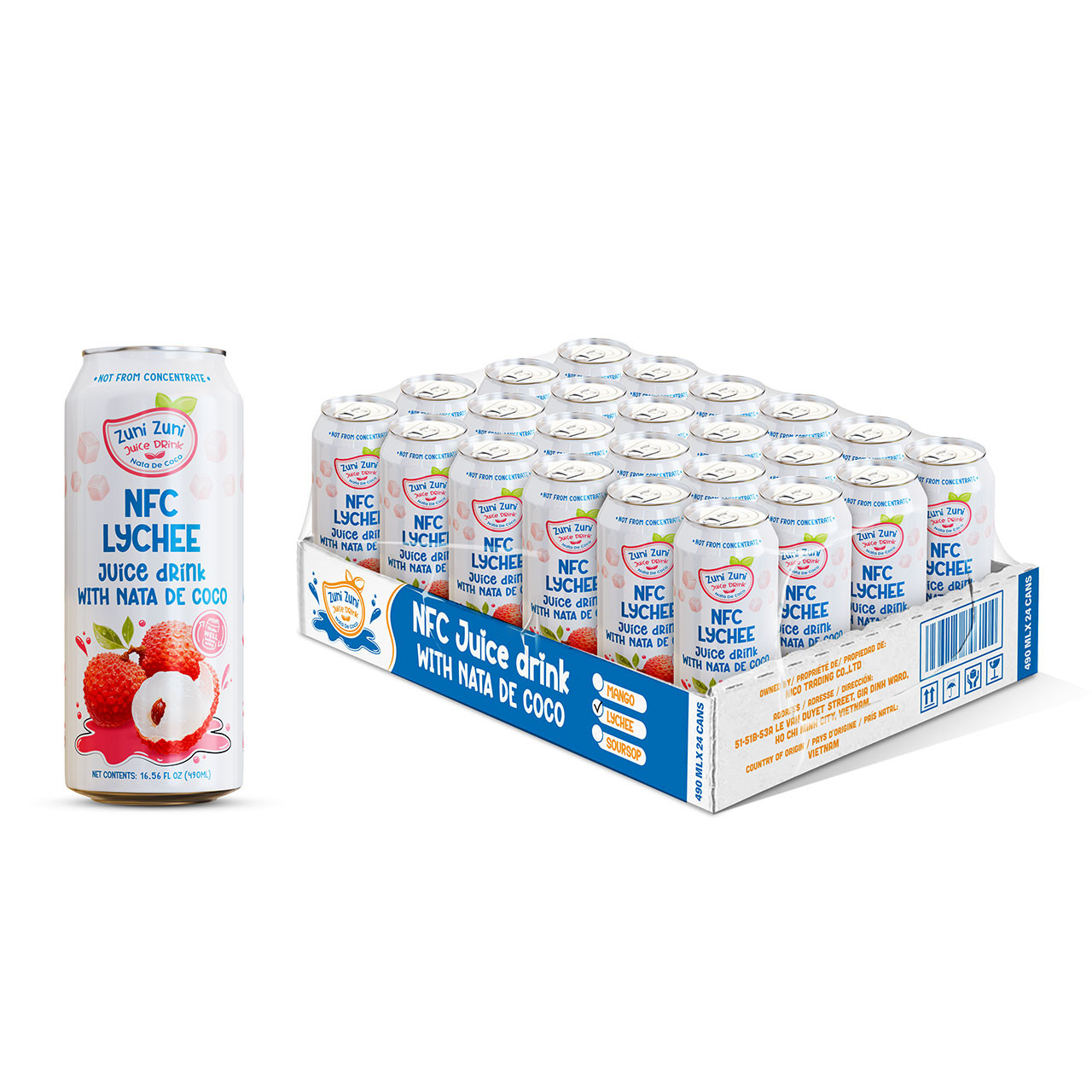 NFC Lychee Flavoured Juice Drink with Nata de Coco | Can, 490Ml (16.56 Fl oz)