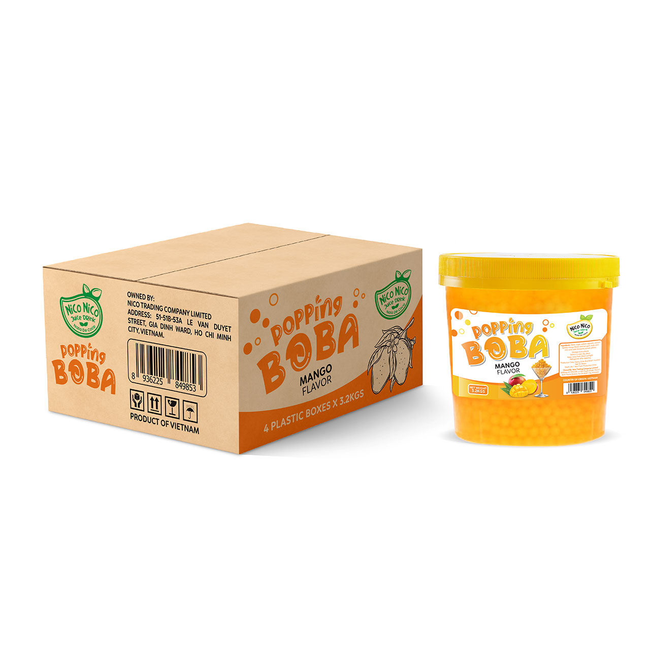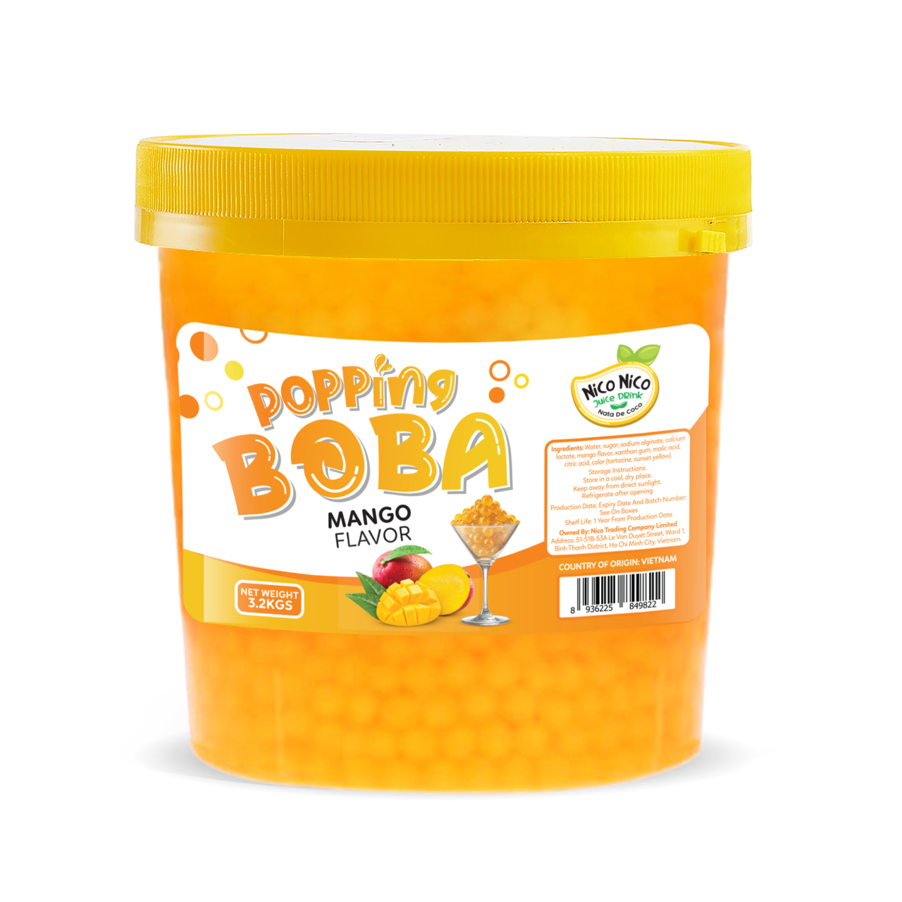Popping boba ball with mango flavor is a tropical beverage with bold fruit flavor and a soft, burstable texture. Each orange-hued pearl is filled with mango juice and designed to release flavor on contact, enhancing layered drinks, teas, and chilled desserts. Its vibrant color and consistent texture contribute to visually engaging beverage presentations. This topping pairs exceptionally well with fruit teas and yogurt drinks, creating a balanced contrast in flavor and mouthfeel while maintaining freshness through resealable packaging.