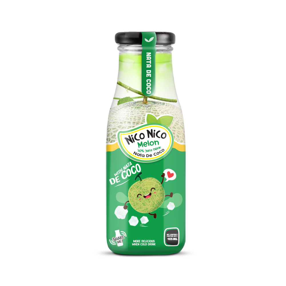 Nata De Coco Melon Juice Refreshingly Sweet | Glass Bottle, 405Ml (13.7 Fl oz)